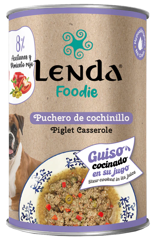 Surtido de siete guisos naturales para perro en formato de 380 gr. Cada receta ofrece proteínas variadas —pavo, jabalí, caballo, pato, conejo y cochinillo— que enriquecen el perfil nutricional y previenen la monotonía alimentaria. Formulado como alimento completo cocinado en su propio jugo, proporciona una nutrición equilibrada con ingredientes funcionales como arándanos, higos, papaya y pimiento rojo.